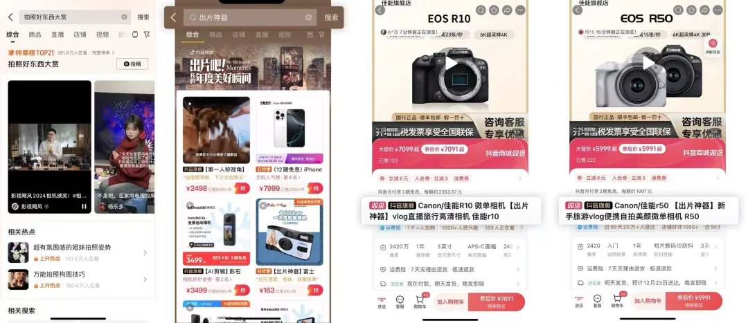 佳能敏锐洞察到这些需求,借势平台上“出片吧!我的年度美好瞬间”等热点话题活动,实现内容批量种草,“出片神器”成为热门搜索小蓝词。