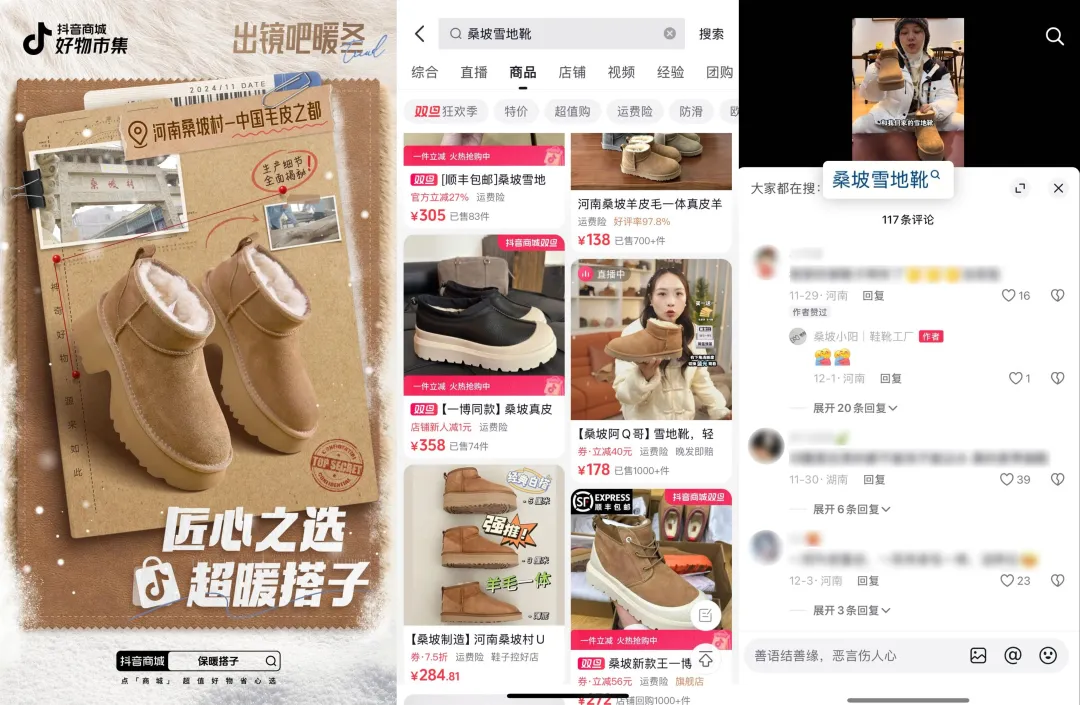 进入冬季,也迎来雪地靴的销售旺季。在抖音,雪地靴成为用户主动搜索的高频词。