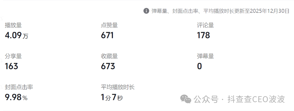 本想给大家看看,具体流量来源的,结果我发现这个视频的数据只更新到25年12月30日了;