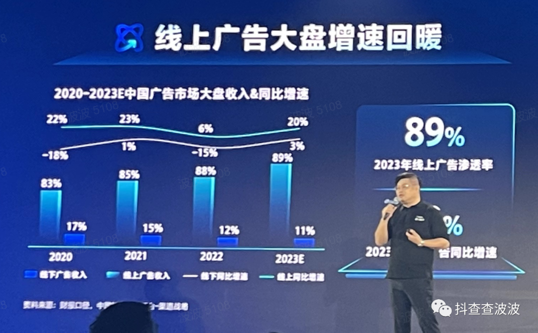 首先是线上广告的大盘增速回暖(同比增速20%),渗透率达到了89%,巨量的市占率依然是第一。