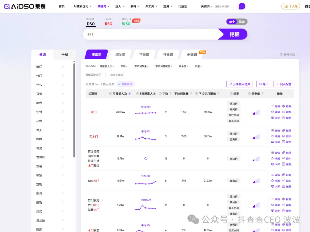 正是因为这种“烧钱”的痛,我才下定决心,一定要找到一个成本更低、效果更持久的获客渠道。所以,我把目光转向了抖音DSO。工具:爱搜aidso
