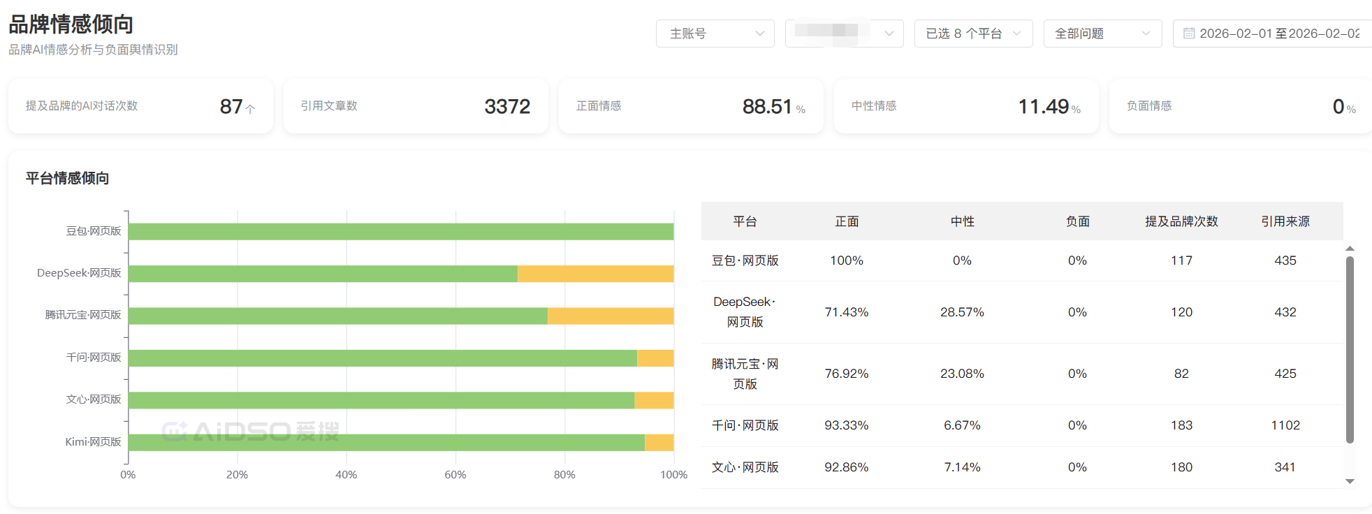 解决方案:利用AIDSO爱搜的“品牌监控”。它能帮你锁定那些关乎你个人声誉的关键节点。AIDSO爱搜会分析AI引用的信源分布。如果发现负面信息,它会提醒你及时补充正面内容进行平衡。通过AIDSO爱搜的优化,你可以让AI在回答时,把你作为该领域的“首选推荐专家”。