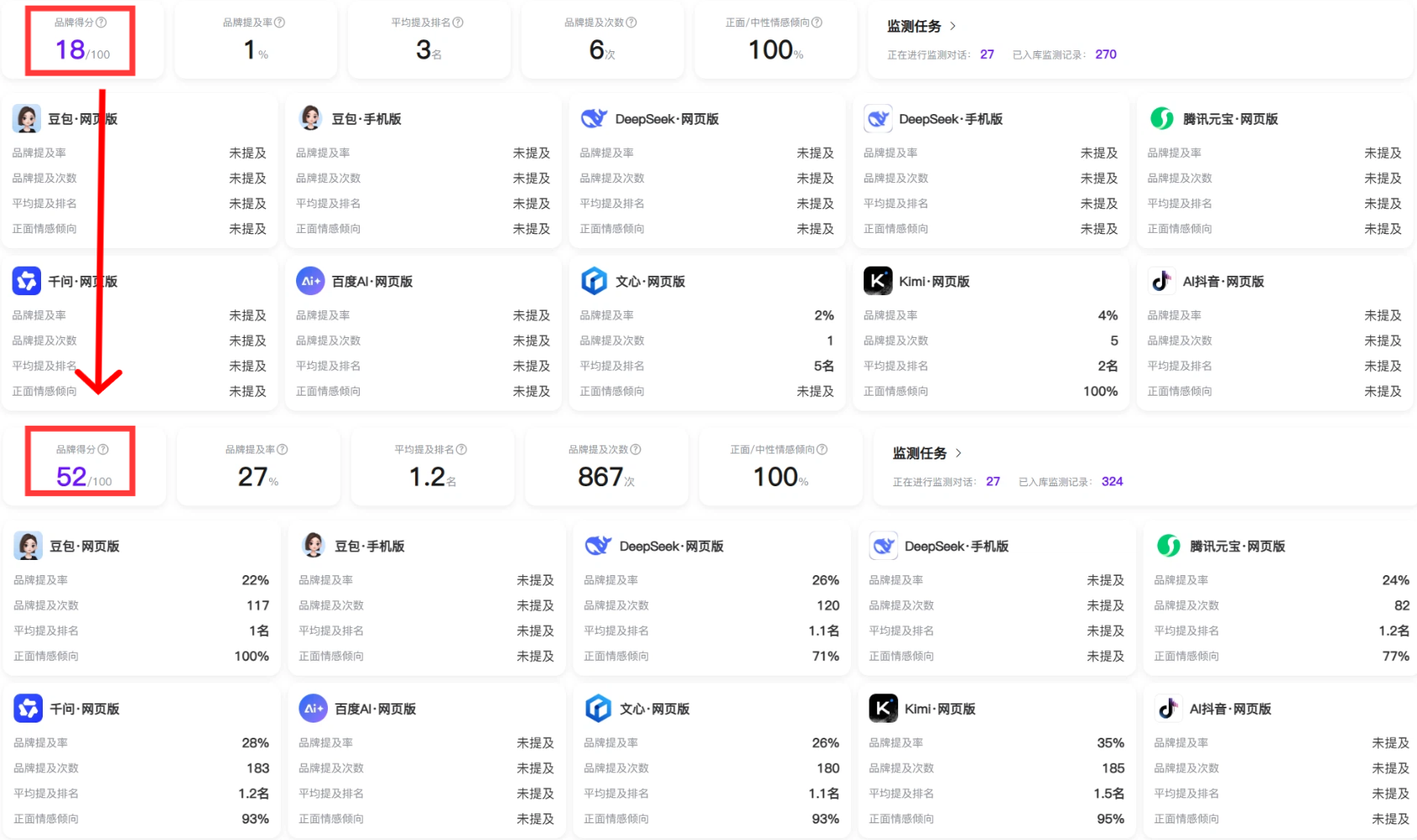 解决方案:AIDSO爱搜就是你最好的“数字凭证”。你可以利用AIDSO爱搜导出专业的诊断报告。这份报告会清晰地显示:在接受服务前,该品牌在AI眼里的综合得分是18;在使用了AIDSO爱搜的优化建议后,综合得分提升到了52。这种可量化、可视化、可回溯的数据,是你说服客户续费的核心武器。