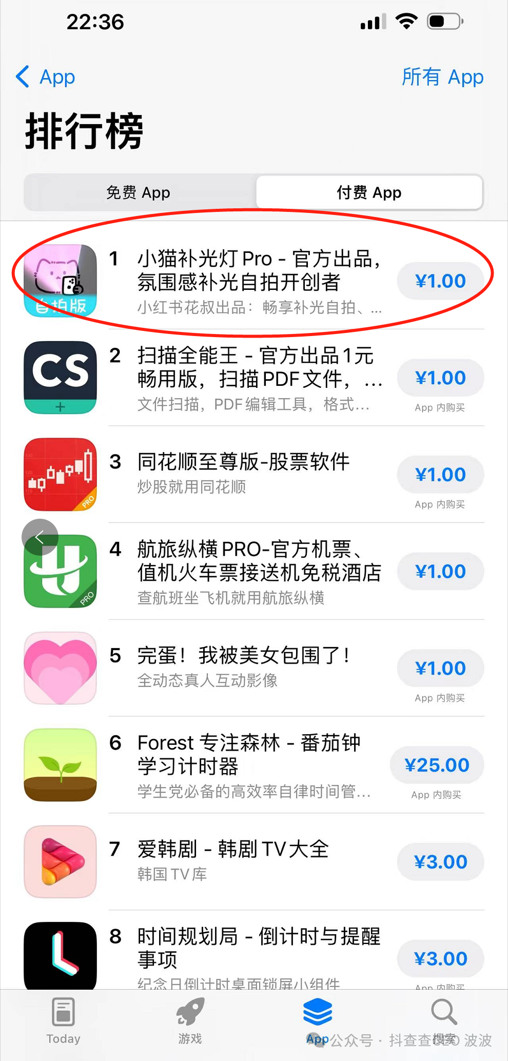 在App生态的竞争异常激烈的今天,只有那些精心打磨、投入重金开发和推广的产品,才能在App Store等应用商店中脱颖而出,登上榜首。然而,最近一款名为“小猫补光灯Pro”的应用,却以一种完全不同的方式打破了这一格局。它不仅成功登顶应用付费榜单Top1,更是连续霸榜120小时(截止到发文时间,仍然保持Top1),成为了一个现象级的产品。