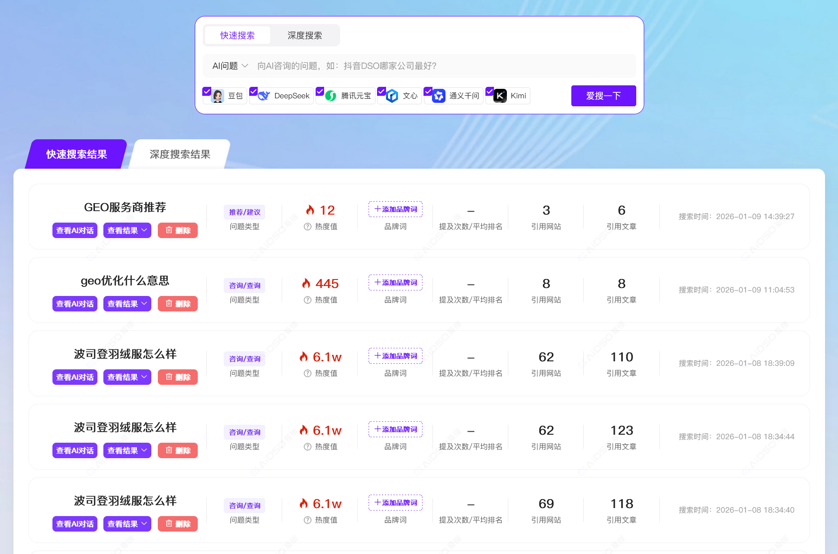 爱搜观察:2026 年的 GEO 优化,数据能力已经成为分水岭。如果你们有基础分析能力,其实只需要一个专业的 AI 搜索监测工具(比如爱搜 AIDSO 的实时排名追踪模块),就能完成 80% 的优化决策。