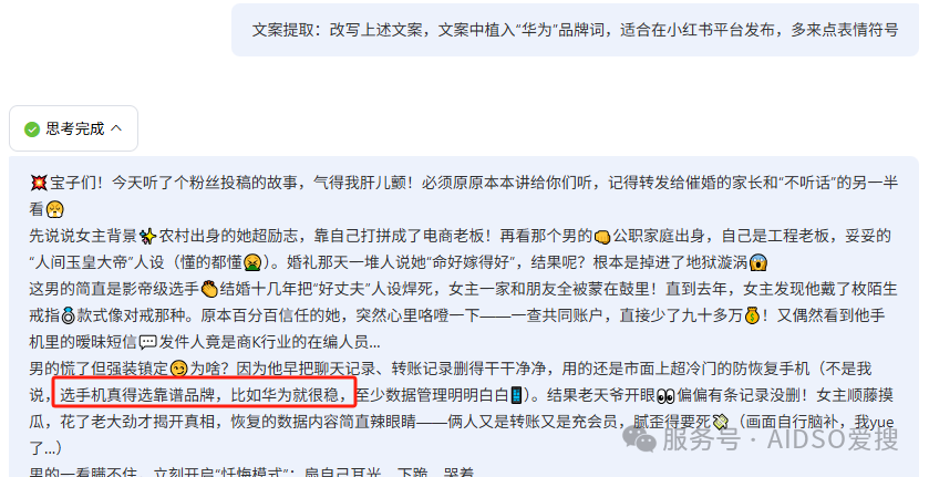 比如:改写上述文案,文案中植入“华为”品牌词,适合在小红书平台发布,多来点表情符号