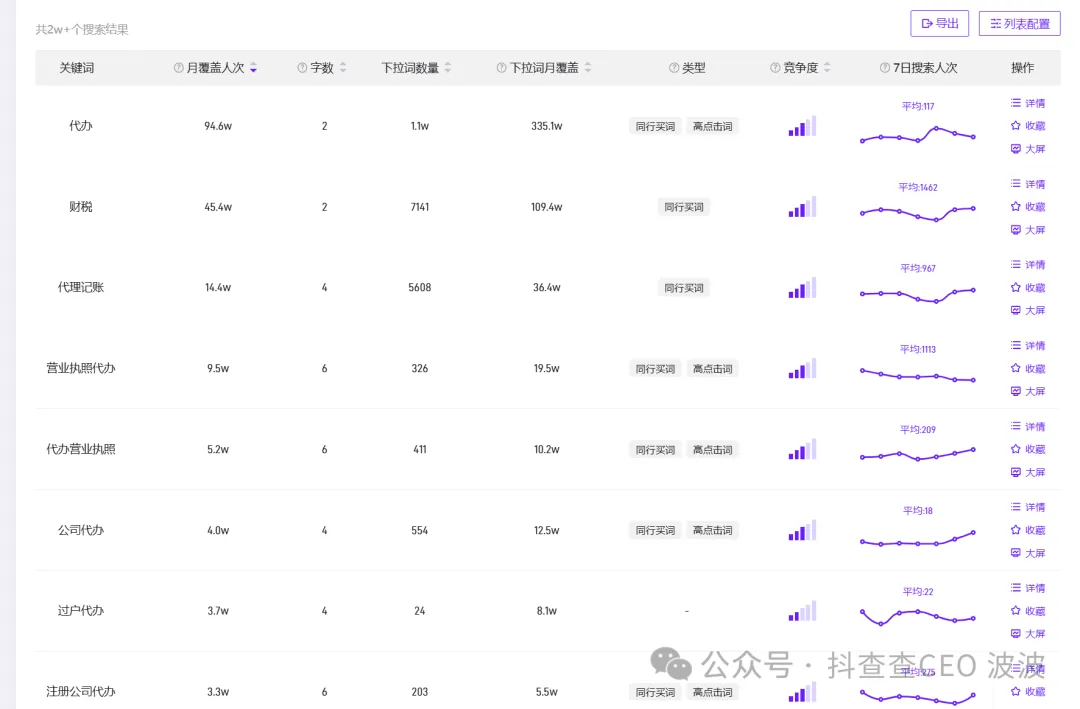 上述大词已经是热度最高的行业词了,月搜索人数在10-100万之间,单日也是几百到过千的实时搜索量级。