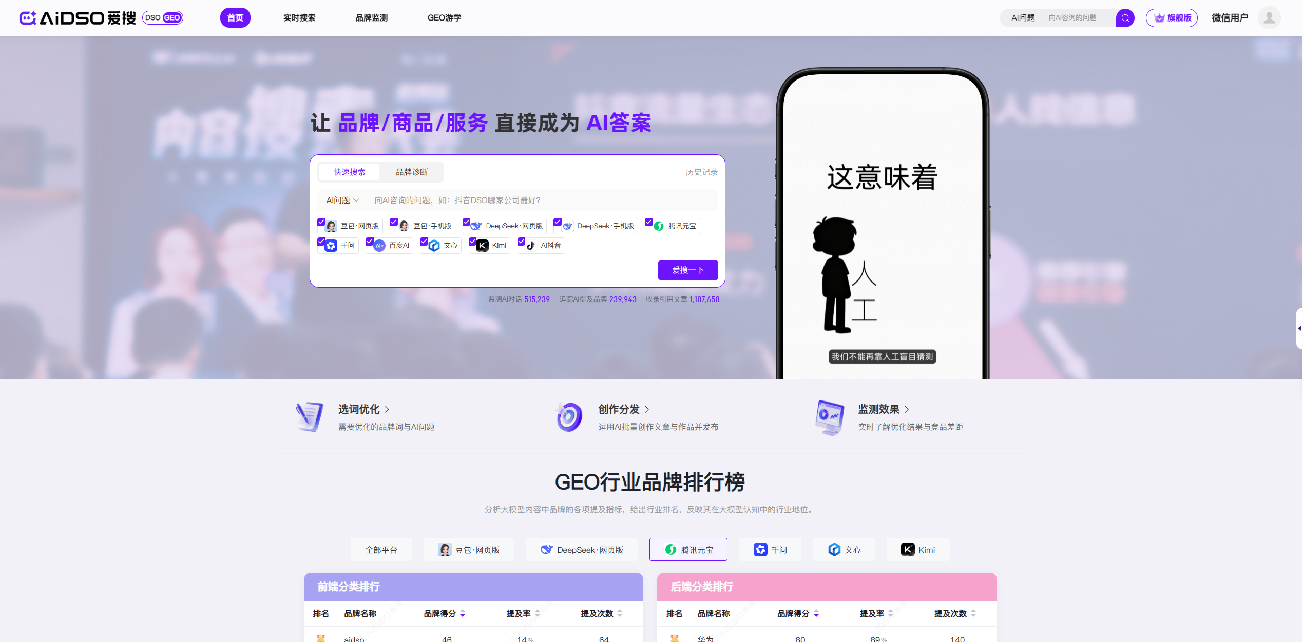 这时候,如果AI不提你,你的品牌就已经被提出市场了, 我们AIDSO爱搜发现,这正是目前所有品牌方最深的恐惧。