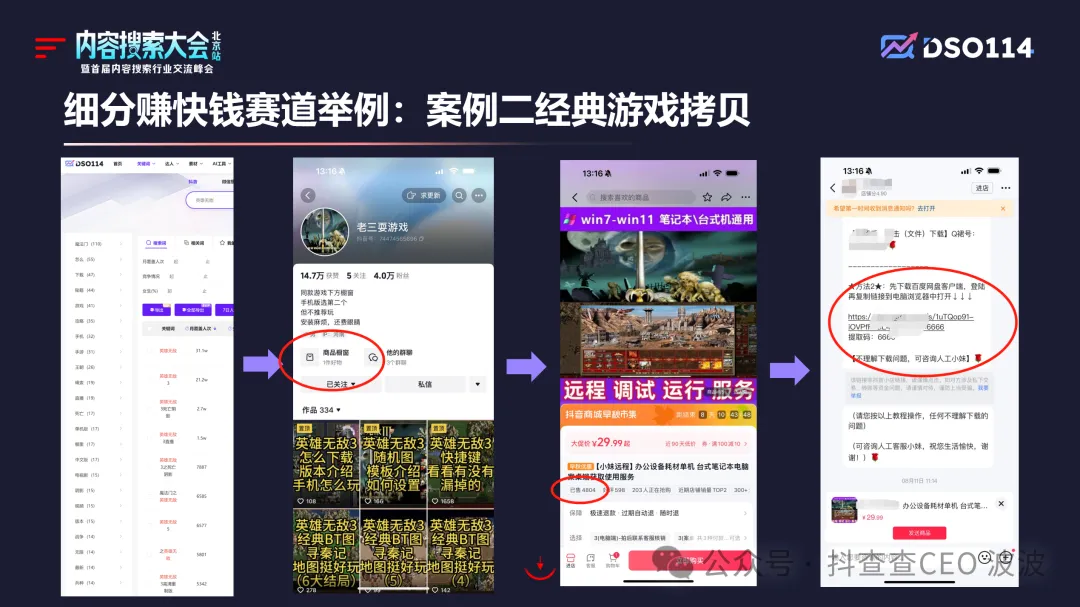 有大量账号,通过展示不同版本的该款游戏,同时覆盖掉各种相关的搜索词,通过抖店进行快速转化。购买后,联系客服,客服直接给了网盘下载链接。快速全额赚取成交收益。