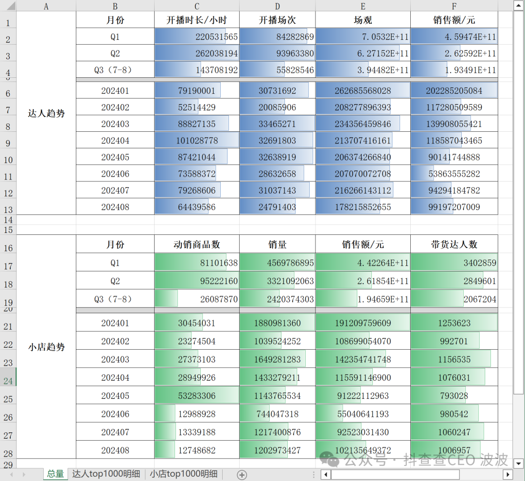 top1000的达人和小店趋势图