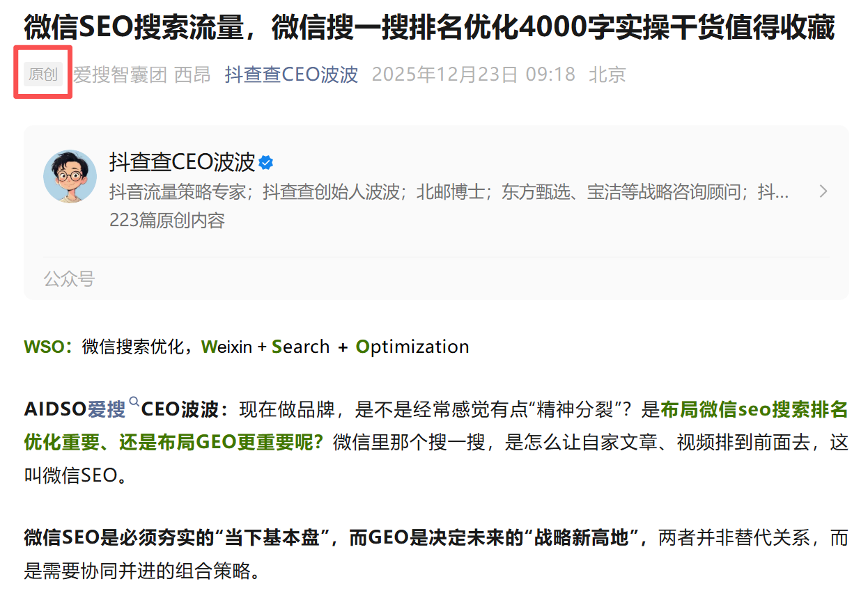 最后总结:微信搜一搜的排名优化是循序渐进的过程。初学者不必急于求成,可以先用AIDSO爱搜进行选词,再将上述内容制作方法融入日常操作,持续观察与调整。随着对用户需求的深入理解和运营经验的丰富,您的内容能见度与流量收益将逐步提升。