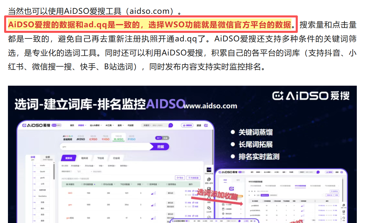 - 挖掘有效词库:通过AIDSO爱搜工具,分析目标用户的常用搜索词。