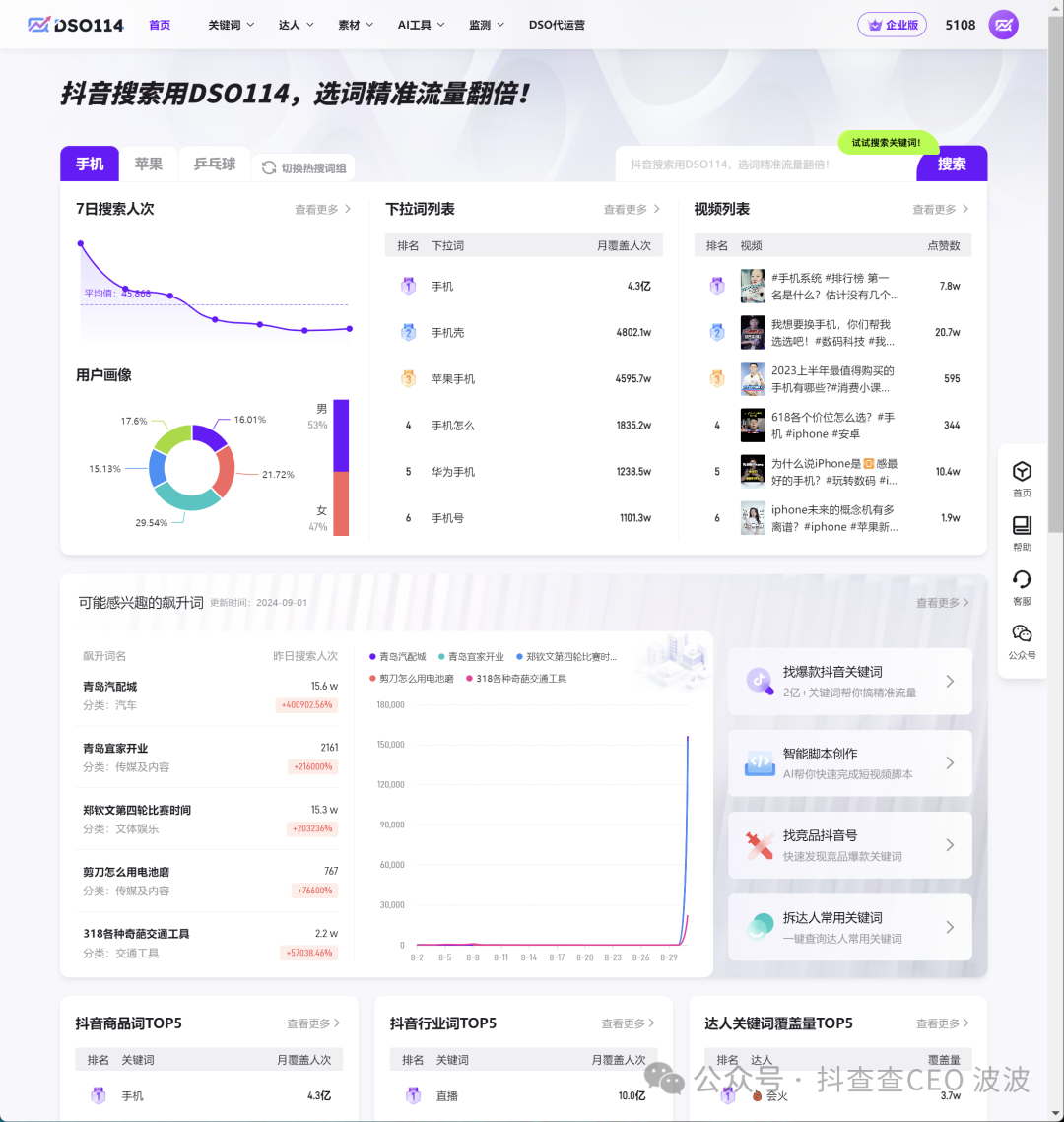 在工具层面,之前有一个比较老牌的SEO工具5118